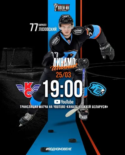 🔥 На старт! Внимание! Плей-ин! ⚔️ МХК «Крылья Советов», г.Москва 📍 УДС «Крылья Советов», ул.Толбухина, д.10/4 🗓 25 марта ⏰ Начало в 19:00 📹 Трансляция на YouTube-канале «Хоккей Беларуси» @dinam