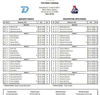 📋Состав минского «Динамо» на домашний матч против «Локомотива» Голкипер Зак Фукале сыграет в старте. Василий Демченко — бэкап, Антон Круповец остался вне заявки. Егор Бориков вернулся во второе зв
