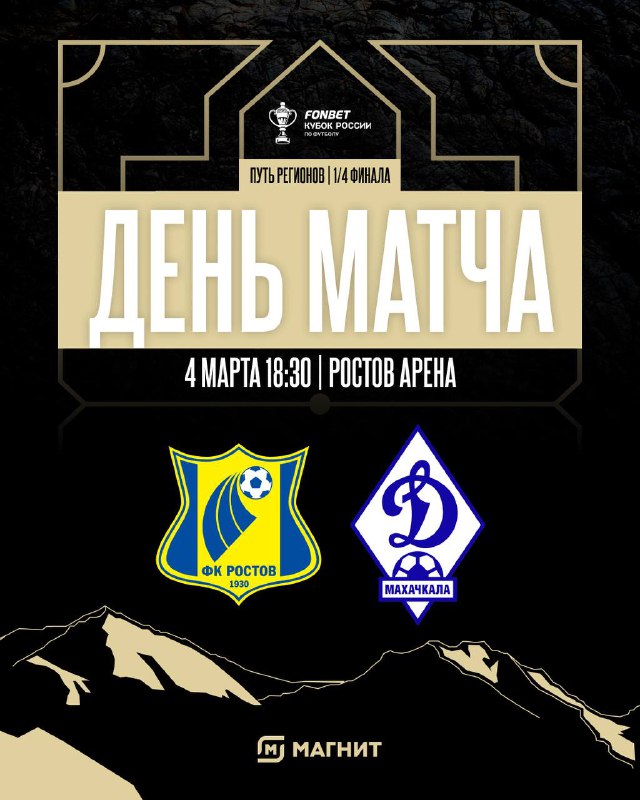 MATCHDAY Уже сегодня сыграем в четвертьфинале Пути Регионов FONBET Кубка России 🏆 #РостовДинамо 🕡 18:30 🏟️ Ростов Арена 🎙 МАТЧ ТВ ⚽️ — побеждать! @dinmx
