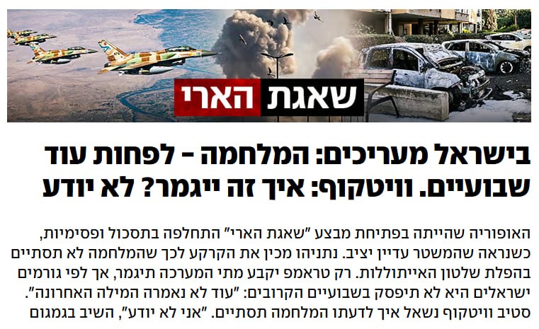 Война с Ираном продлится не менее двух недель и вряд ли приведет к свержению действующего режима. Об этом сообщает Ynet со ссылкой на источники. Как отмечает издание, первоначальная эйфория, сопровож