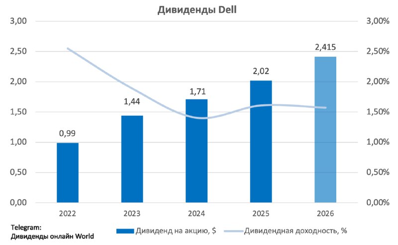 💿 Увеличение дивидендов Dell🔼 Dell — американская компания, один из крупнейших в мире производителей вычислительной техники. Компания объявила об увеличении квартальных дивидендов на 20%. #DELL #NY