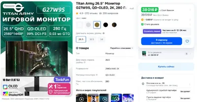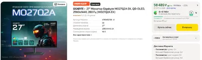 https://market.yandex.ru/cc/92DyTL?erid=5jtCeReNx12oajxU2UPonji Gigabyte MO27Q2A - 53тр (двойной рандом яндекса) 26,5" QD-OLED 2560x1440 280 Гц, Type-C но без зарядки Цена с промокодом "SKIDKA5000