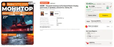 https://market.yandex.ru/cc/7kKkbh?erid=5jtCeReNx12oajvGYiJdShJ Xiaomi Redmi G27Q (2025) ~12,5тр. 27" IPS 2560x1440 180гц, простая нога с одной регулировкой - под кронштейн или если минимальной ножк