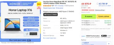 На алишке тоже стартовала первоапрельская распродажа. https://ali.click/k6ypx1?erid=2SDnjdZk6KA Honor MagicBook X16 2024 - 43тр 16", Ryzen R5 7640HS, Radeon 760M 16гб/512ГБ Быстрая доставка из РФ бе