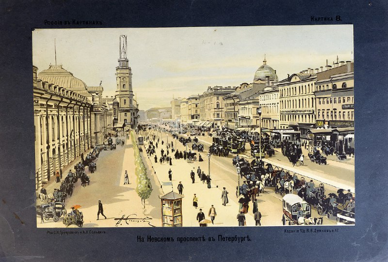 🔻А Невский в этот день, как и в другие дни, Кипел прохожими на солнце и в тени, И так же, в две реки, тянулись экипажи Меж стёкол, блещущих соблазнами продажи, И разноцветные, но бледные дома По