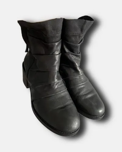 Leather Boots цена: 🔒 cond 9 / size 37 / натуральная кожа / каблук 5см / верх с драпировкой / закруглённый носок / эластичная структура голенища продано. АКТУАЛЬНОЕ НАЛИЧИЕ включи уже уведомлен