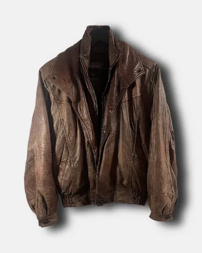 Leather Bomber цена: 🔒 cond 9 / size S / факт M-L / массивный кропнутный крой / прочная кожа / необычная застёжка на пуговицах / внутри доп жилетка на молнии для утепления / стойкая фурнитура / лучш