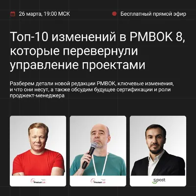 🔝Топ-10 изменений в PMBOK 8, которые перевернули управление проектами Всем привет! 26 марта в 19:00 МСК. Я с коллегами из Product Lab проведем экспертную дискуссию, где разберем детали новой редакц