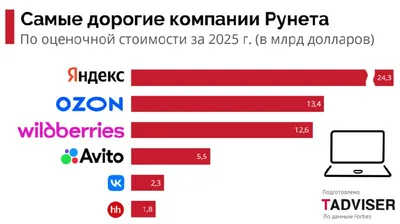 Стоимость рунета составила $91 млрд: Forbes опубликовал свежий рейтинг самых дорогих компаний 📈 Совокупная стоимость лидеров российского интернета за 2025 год выросла на 47%. На первый взгляд — триу