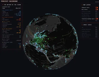 Project Backbone запустил интерактивную карту интернета. Проект показывает весь путь данных: от океанских кабелей и дата-центров до городского оптоволокна. Можно отследить маршруты трафика и своими г