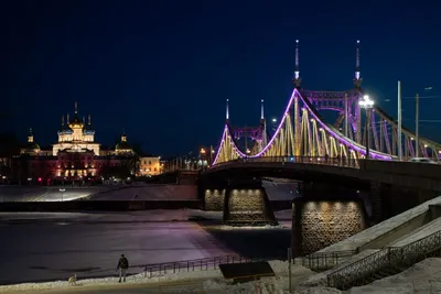 Знаменитый Староволжский мост в Твери - младший брат моста в Будапеште. По вечерам у него включается подсветка. Да не просто подсветка - а целое светопреставление! Вот лишь небольшая часть вариаций, к