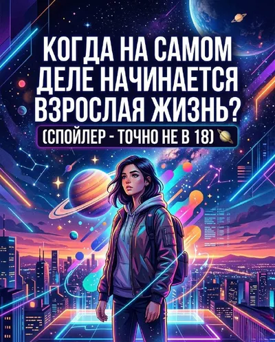 Когда на самом деле начинается взрослая жизнь? (Спойлер - точно не в 18) 🪐 Государство говорит, что в 18. Родственники - что после получения диплома или ипотеки. Астрология же снисходительно улыбаетс