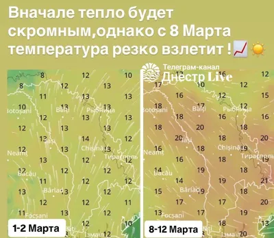 ‼️☀️ Погода в Молдавии и Приднестровье. Вначале тепло будет скромным, однако с 8 марта температура резко взлетит 👉 Днестр Live. Подписаться - ✅ t.me/dnestrlive