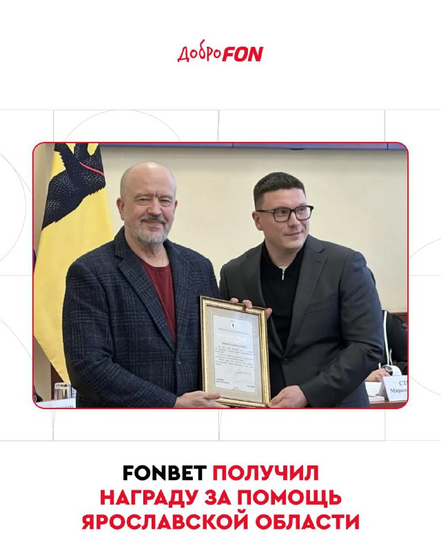 Компанию FONBET наградили в Ярославской области за помощь региону Благодарственное письмо от имени главы региона Михаила Евраева из рук вице-губернатора области получил генеральный директор компании