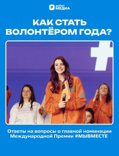 Как стать волонтёром года? «Волонтёр года» – самая популярная номинация Международной Премии #МЫВМЕСТЕ. Победу в номинации «Волонтёр года» присуждают за выдающийся вклад в развитие добровольческог