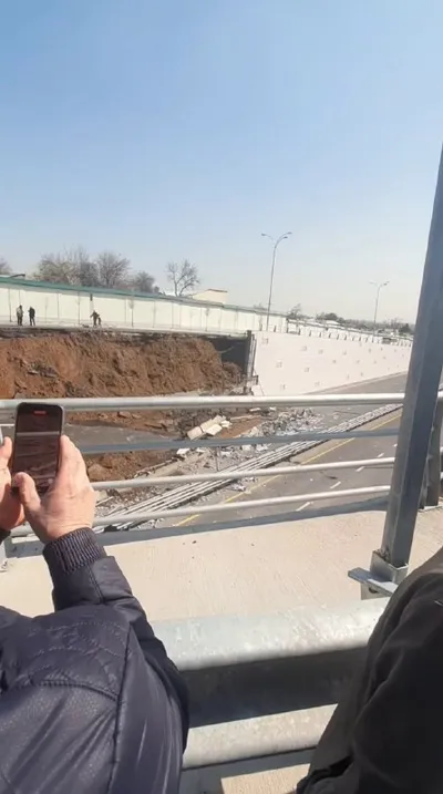 ⚡️⚡️🚨 Срочно: на перекрёстке Темура Малика — Буюк Ипак Йули обрушилась часть дороги на путепроводе (бывший Троицкий мост) ‼️ На месте образовалось провал и повреждение проезжей части. Информация о