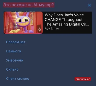 🎁«Это похоже на AI-мусор?» — YouTube начал спрашивать во время просмотра роликов. Собирают ответы, чтобы почистить наши ленты. будет меньше нейро-мусора 🤩 Доктор GPT