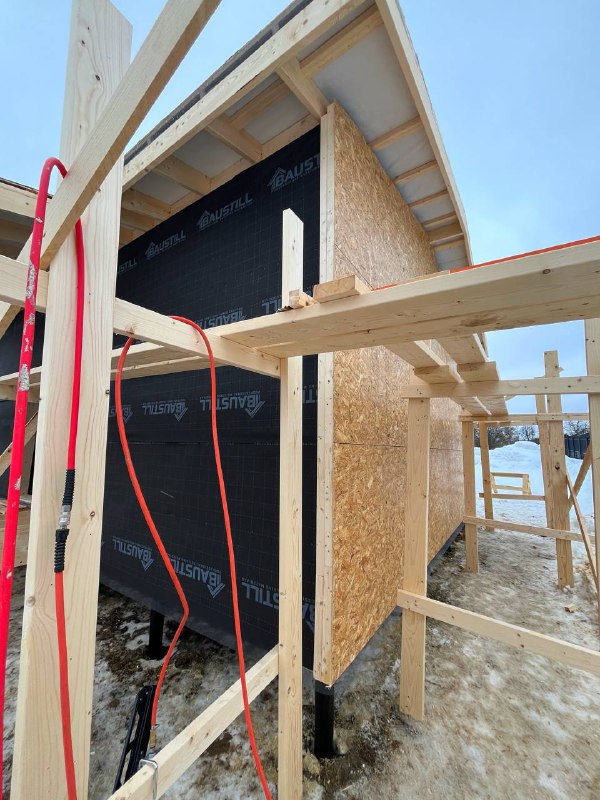 Продолжаем готовить фасад под осб💪 По каркасу идет горизонтально брусок сухой строганный 40х50 Далее укладываем минеральную плиту технониколь теплый каркас Далее закрываем все ветро защитной 3х слойн