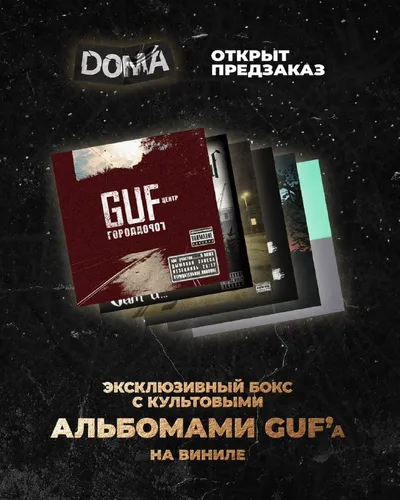 Мы открываем предзаказ на лимитированный виниловый бокс GUF’a — коллекцию знаковых альбомов, собранных в одном издании. Внутри: • «Город Дорог» • «Дома» • «Сам и…» • «Еще» • «Опять» • «Запретно