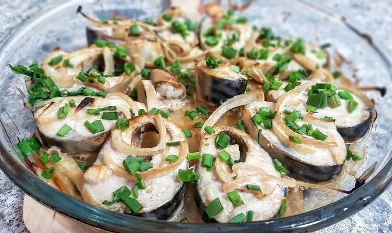 СКУМБРИЯ В ГОРЧИЧНОМ СОУСЕ Ингредиенты: Скумбрия - 1 шт. Репчатый лук - ¼ шт. Йогурт греческий - 1 ст. л. Соевый соус - 1.5 ст. л. Горчица - 1 ст. л. Приготовление: Скумбрию порезать на куск