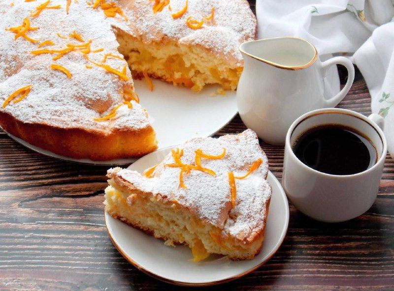 АПЕЛЬСИНОВЫЙ ПИРОГ Ингредиенты: Яйца — 5 шт. Сахар — 1 стакан Мука — 1 стакан Разрыхлитель — 1 ч. л. Апельсин — 1 шт. Приготовление: Подготовьте начинку: апельсиновую цедру натрите на крупн