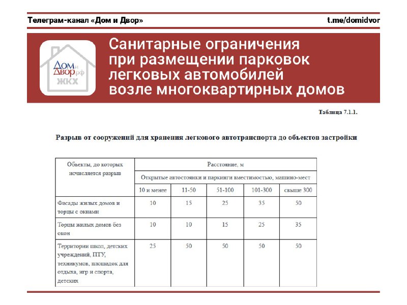 Санитарные ограничения при размещении парковок легковых автомобилей возле многоквартирных домов В продолжение темы парковок на дворовых территориях и изменения порядка установки шлагбаумов на придомо