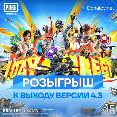 ВСТРЕЧАЕМ ВЕРСИЮ 4.3 🙌 8-я годовщина игры с огромным количеством обновлений уже доступна, а пополнить юсишки поможет Donatov.net 👟 В честь такого праздника - ловите розыгрыш 😀 ✔️ 1 место: 8100 UC
