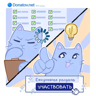 МЯУ, ЭТО ДОННИ 😀 Хочу вам напомнить, что на Donatov.net КАЖДЫЙ день проходят раздачи, в которых вы можете участвовать и лутать Dcoin* Все очень просто: 1️⃣ Заходите на сайте в раздел "Раздача"