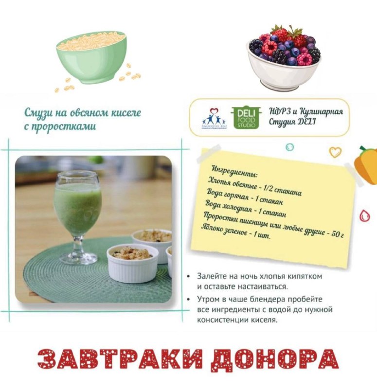 😉Хороший завтрак — это первый шаг к успешной донации! Продолжаем делиться полезными рецептами в нашей рубрике «Донору тоже вкусно». 🥣Сегодня расскажем про два простых и полезных блюда, из нашего