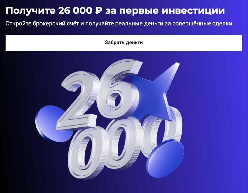 26 000 ₽ от Совкомбанк инвестиции 💳 Новая акция от брокера за первые инвестиции для клиентов впервые открывающих счет. Как участвовать? 1. Открываем брокерский счёт по специальной ссылке; 2. В теч