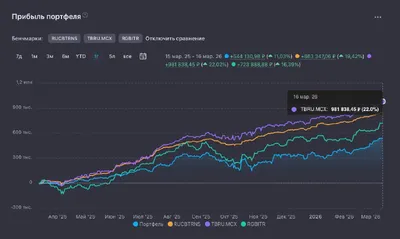 Всегда любопытно сравнить динамику по своему портфелю с основными бенчмарками Обычно я сравниваю портфель с: • MCFTRR – индекс Мосбиржи полной доходности с учетом дивидендов (за вычетом налогов); • R