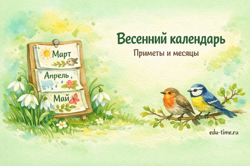 Весенний календарь Ребёнок закрепит знание весенних месяцев и народных примет; узнает простые признаки смены сезонов. Проверьте себя в викторинах: 👉 Весенний календарь 👉 Весна идет 🎓 Красочный д
