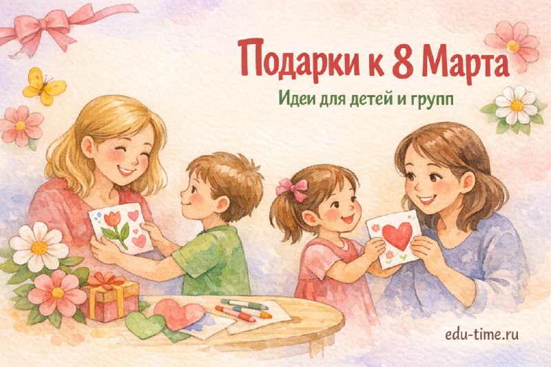 Подарки к 8 Марта Праздник 8 Марта — хорошая возможность поговорить с детьми о доброте, воспоминаниях и семейных традициях. Объясните просто: это день, когда говорят спасибо мамам, бабушкам, воспитат