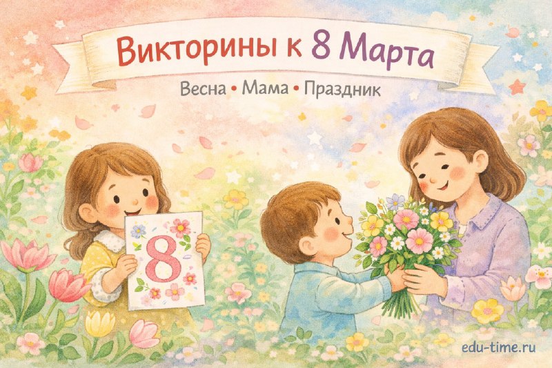 🌷 Скоро 8 Марта — время тёплых слов, цветов и детских улыбок! Приглашаем поучаствовать в тематических викторинах к Международному женскому дню — они отлично подойдут для занятий в детском саду и шко
