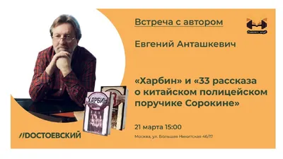 #мероприятиявDостоевском 21 марта в книжном Dостоевский состоится творческий вечер с Евгением Анташкевичем и презентация его книг "Харбин" и "33 рассказа о китайском полицейском поручике Сорокине"!
