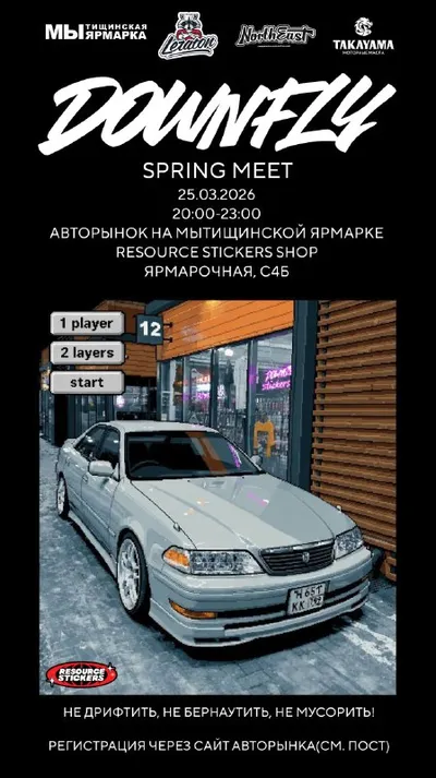 DOWNFLY SPRING MEET 25/03/2026 20:00 - 23:00 Авторынок Мытищинской Ярмарки Resource Stickers Shop Ярмарочная, С4Б НЕ ДРИФТИТЬ! НЕ БЕРНАУТИТЬ! НЕ МУСОРИТЬ! НУЖНА РЕГИСТРАЦИЯ В СИСТЕМЕ ЛОЯЛЬНОСТИ!