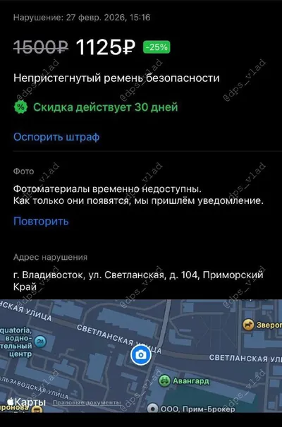 Во Владивостоке на Авангарде установлена новая камера, фиксирующая непристегнутые ремни безопасности — водителям начинают приходить штрафы в размере 1500 рублей. Камера расположена в районе Светланс