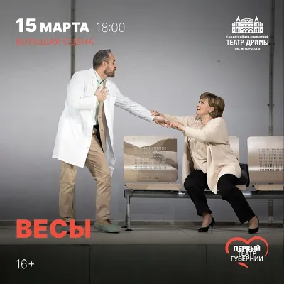 Завтра! 15 марта 2026 года (18:00) Евгений Гришковец «Весы» (16+) Комедия Режиссёр-постановщик – Михаил Лебедев Художник-постановщик и художник по костюмам – Наталья Чернова Композитор – Евге