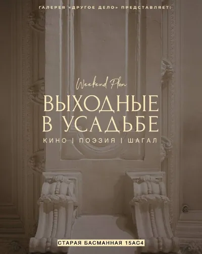Пссс! Собрали для вас три повода зайти к нам, в одну из самых атмосферных галерей Старой Москвы. Весенний уикенд в усадьбе — это коктейль из Вуди Аллена и Марка Шагала, приправленный поэзией Серебряно