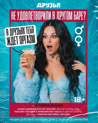 🔥НЕ УДОВЛЕТВОРИЛИ В ДРУГОМ БАРЕ?🔥 В «Друзьях» тебя ждёт настоящий ОРГАЗМ 😏 С 21.03 запускаем мощную акцию на легендарный коктейль «ОРГАЗМ» — и он точно исправит вечер! Как получить? Проще просто