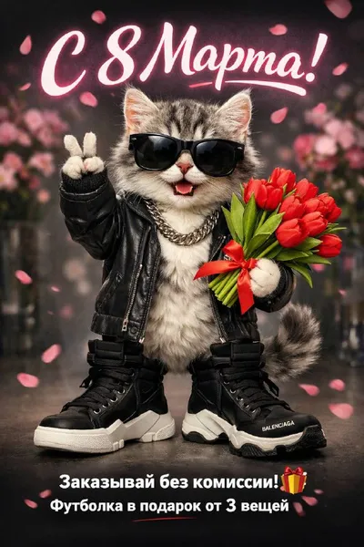 Поздравляем всех девушек с праздником (парней так же) ❤️ В честь этого дня действует акция - заказы без комиссии до 23:59 09.03 🛒 А при заказе от 3-х вещей вы получите футболку на выбор в подарок �
