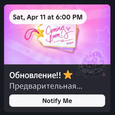 🖤🖤🖤🖤🖤🖤🖤🖤🖤🖤 🌟🌟🌟🌟🌟🌟🌟🌟🌟🌟 👸Походу, разработчики подготовили для нас еще одно мини-обновление! 🌟🌟🌟🌟🌟🌟🌟🌟🌟🌟 ✨Предварительная дата мини-обновления 11 апреля в 8 по МСК Так же в