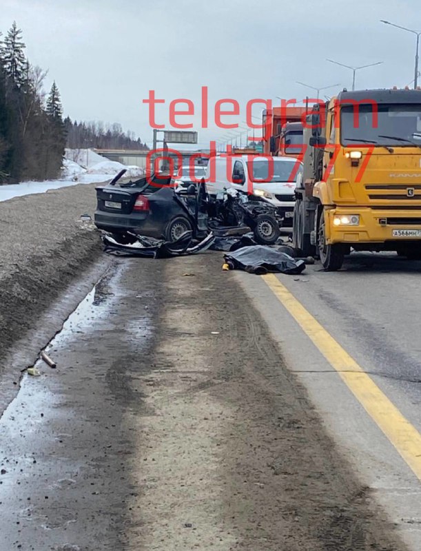 Доп.Фото Подмосковье, Пушкино Трасса А-107, столкнулись грузовик и маршрутка, два трупа. Подписаться @dtp777 Прислать новость @dtp777bot