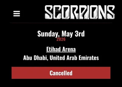 🎸На официальном сайте группы «Scorpions» концерт, запланированный на 3 мая в Абу-Даби, поменял статус на «Cancelled» («Отменённый»). 👍 Подпишись на Дубай с огоньком