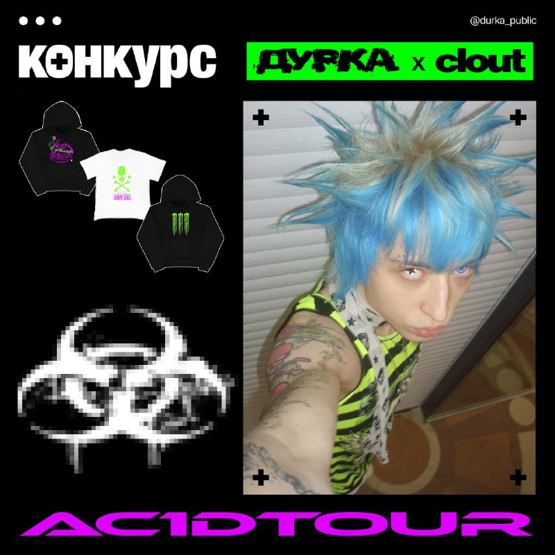 🤪КОНКУРС ДУРКА Х CLOUT: БИЛЕТЫ НА ТУР + МЕРЧ 👨⚕️😁 Через неделю стартует первый тур кислотного фрешмена clout — мы решили объединиться с артистом и подарить вам билеты в любой город тура и мерч на