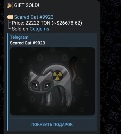 🤯 РЕКОРДНАЯ СДЕЛКА ПО КОТУ 🐈⬛ Вчера ночью был куплен ядерный Scared Cat на черном фоне за 22.222TON Это самая дорогая покупка кота за всё время portals