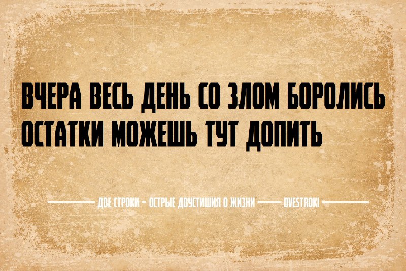 Юмор и развлеченияОстрые двустишия о жизни, которые заставят улыбнуться и задуматься одновременно. Авторы: Владимир Поляков, Владимир Вишневский, Аркадий Гурович, а также менее известные поэты-юмористы. По всем вопросам: @AndrewRuss Рекламный менеджер: @Spiral_Miya