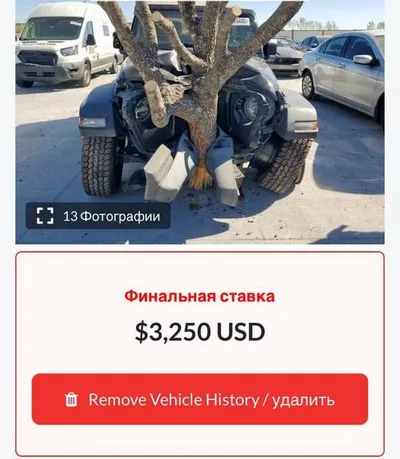 🫡😳 Jeep Wrangler за 250 тысяч рублей нашли на аукционе – но есть нюанс У машины есть небольшая особенность – прямо через капот проходит ствол дерева. Лицо перекупа представили? 🚗 Подписывайтесь