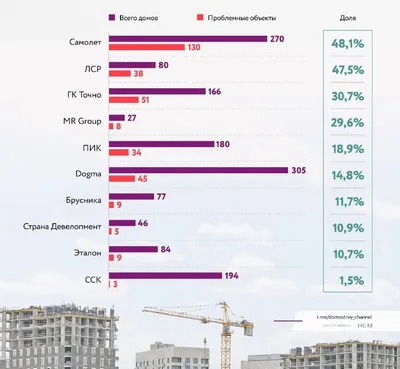 Главные тормоза Москвы. Самолет и ЛСР срывают сроки в половине строек 💩 Тройку антилидеров замыкает застройщик Точно, который оказался совсем не точным при сдаче домов (30,7% строек с задержкой). Х