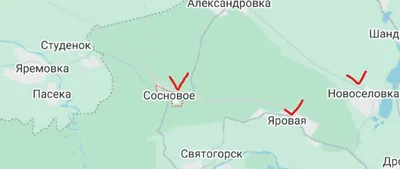 Министерство обороны России сообщило, что сегодня освобожден поселок Сосновое к северо-западу от Святогорска. Ранее была освобождения Яровая. Продолжаются бои и на окраинах самого Святогорска. Подпис